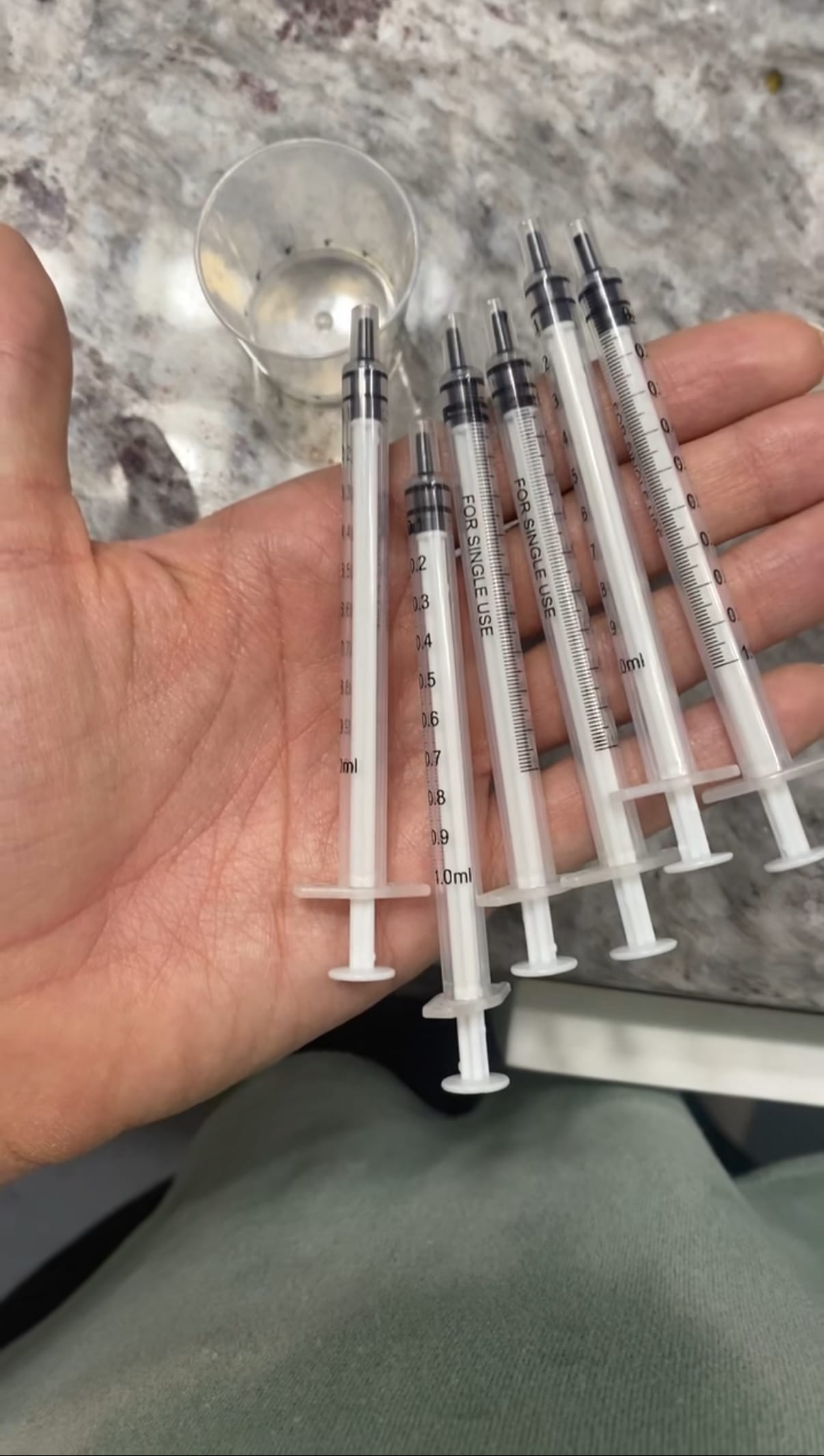 Start by purchasing sterile 1 mL syringes or a colostrum collector. Because colostrum comes in very small amounts, tiny containers work best. I personally used 1 mL syringes in the beginning, then switched to the Haakaa Colostrum Collectors once I was hand-expressing slightly larger volumes.